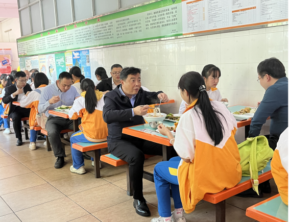 检查中,翁卓辉书记在华侨中学食堂与学生们共进午餐并亲切交谈,详细询问学生对学校饭堂餐饮的意见,同时教导学生要养成良好的就餐习惯,珍惜粮食,杜绝浪费。
